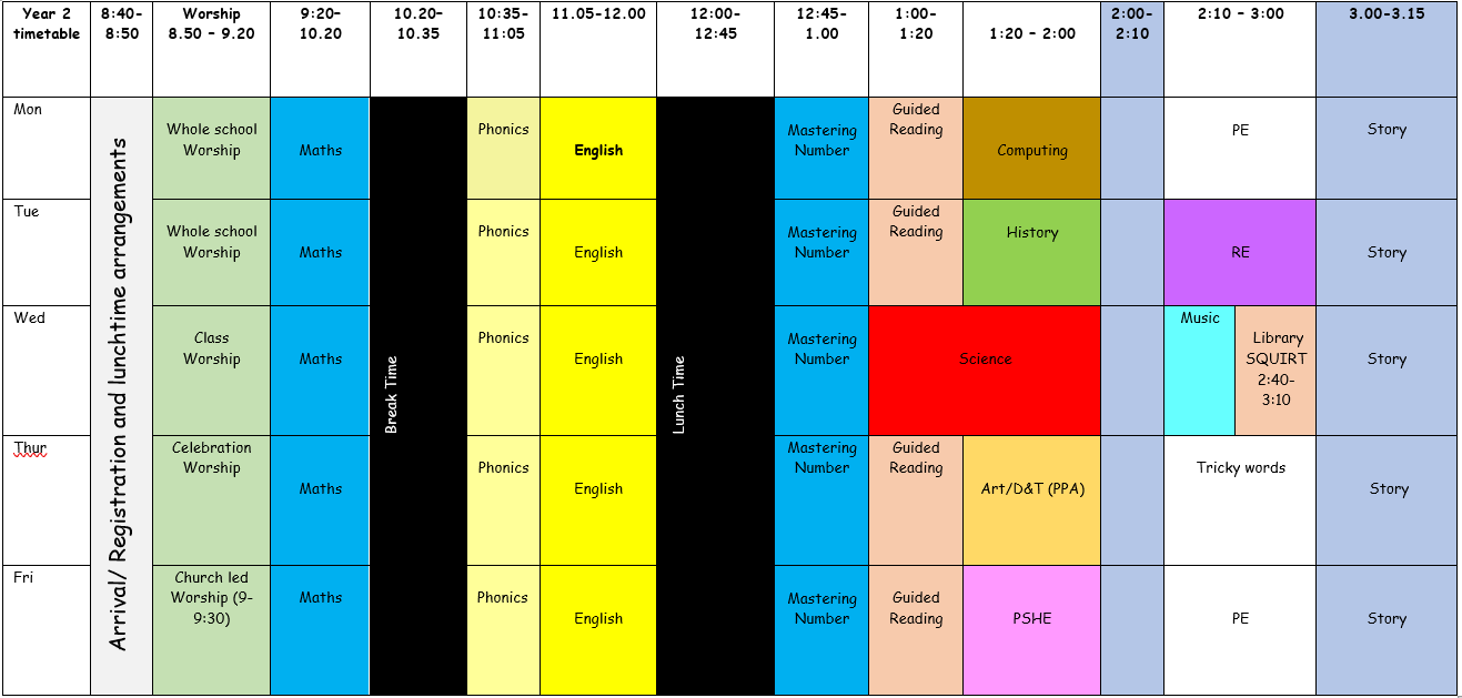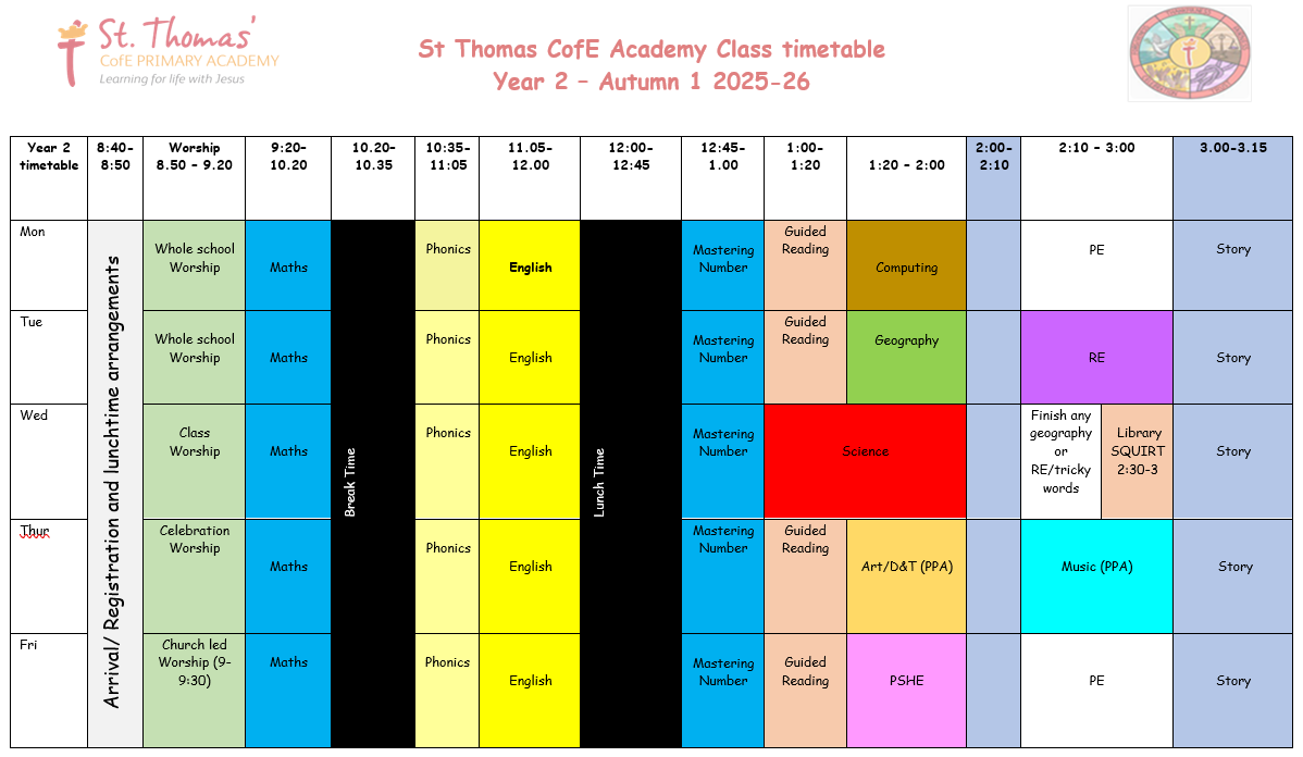 Year 2 PE days will be Mondays and Fridays this half-term. Children should come to school wearing their PE kit on these days. Just a reminder, children should have long hair tied up, and should not be wearing jewellery for PE.